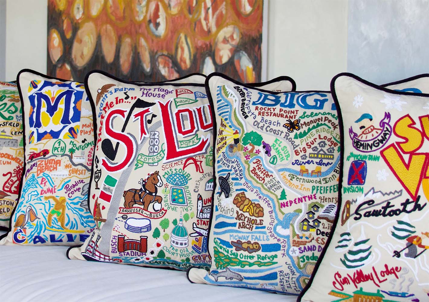 Hand-Embroidery, Maps, and a whole lot of love and joy. Welcome to the world of catstudio. Starting with just 2 designs—Atlanta and Georgia, to celebrate the 1996 Olympics—we now have over 300 of your favorite geographical locales and universities, and many more in the works. Each piece of art is lovingly drawn by hand, on paper. We spend countless hours researching, sketching, chatting with locals, and finally bringing the art to life with as many as 30 colors with one big goal in mind: illuminating YOUR special place with love, joy, and an insider’s perspective.